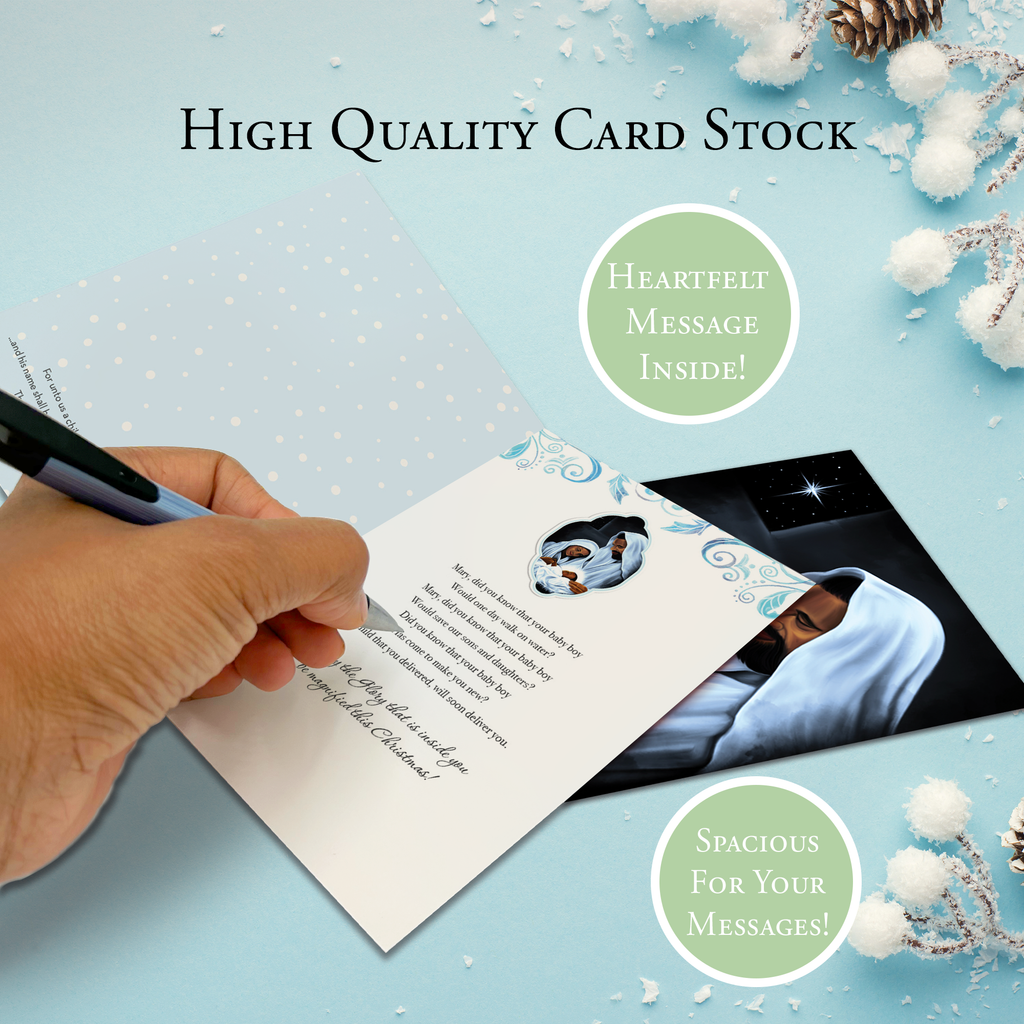 Foil-Stamped Christmas Greeting Cards Box SetAfrican American Expressions Christmas cards celebrate the joy of the holidays and the vibrancy of African-American culture! Our collection of thoughtful seasonal greeting card designs feature faith-inspiring inscriptions and culturally reflective artwork gorgeously embellished with foil-stamping. With over 20 thoughtful designs to choose from, whether timeless, traditional, or modern, you're sure to find the perfect card for everyone on your list!Designed with quality craftsmanship. Every 5 x7" greeting card features a high-resolution image, printed onto sturdy cardstock, and brilliantly embossed. You'll enjoy sharing these elegant and uplifting cards with your loved ones!Holidays, SimplifiedEverything you need to be holiday-ready in one box! AAE's boxed sets include 15 gorgeous greeting cards with coordinating foil-lined envelopes and gold sticker seals. Just personalize, seal, and deliver!FeaturesInspirational Christmas Cards5 x 7"Boxed Set15 Embossed Greeting CardsCoordinating Foil-Lined EnvelopesGold Sticker SealsAbout UsAfrican American Expressions is the world’s largest black-owned gift and greeting-card company. Known for eye-catching designs and poignant art pieces, we offer the top selection of culturally authentic gifts and give back to the community through the AAE fundraising program.