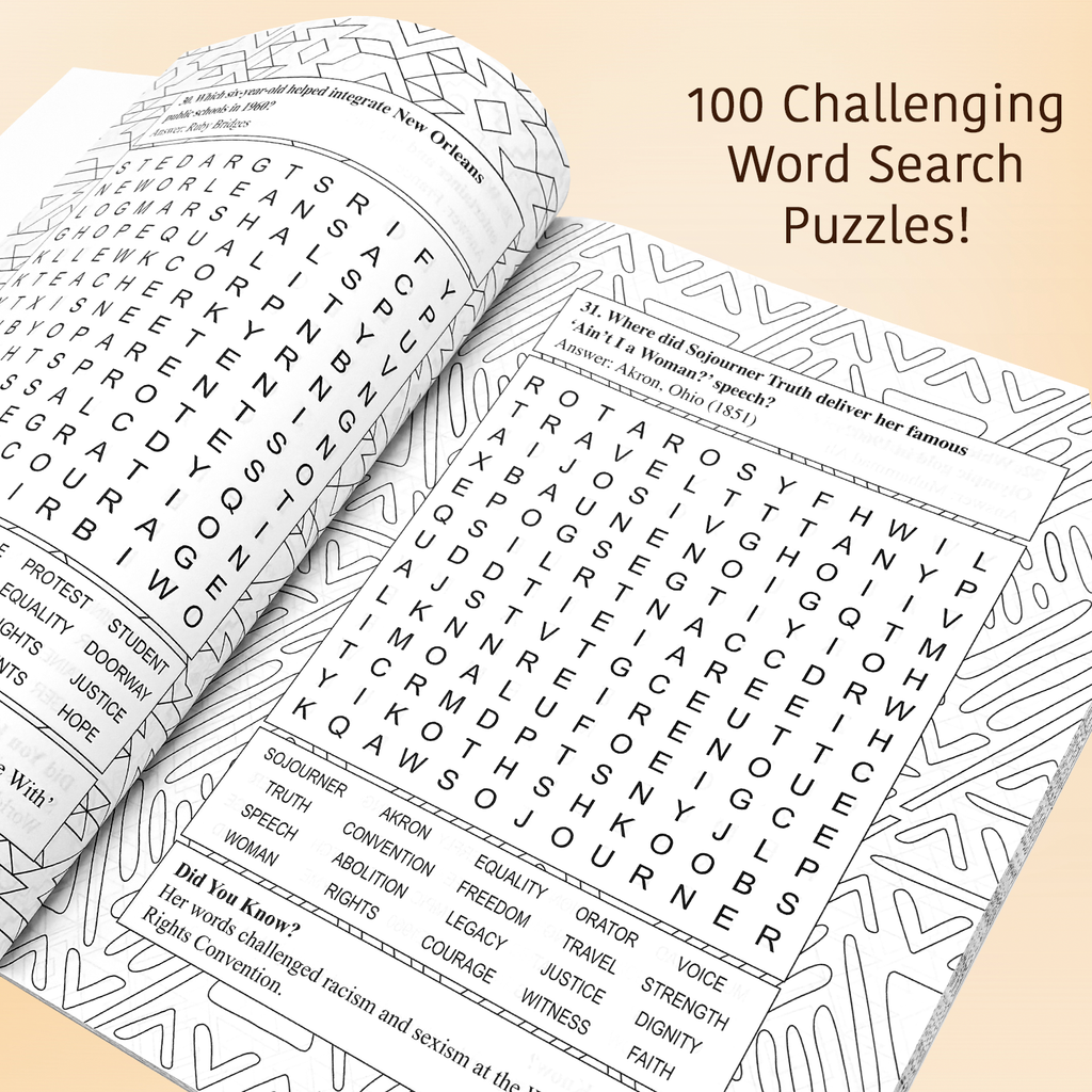 Explore key themes in Black history and culture with puzzles covering civil rights, music legends, inventors, HBCUs, African heritage, and more. Every puzzle is large-print and beginner-friendly, while still offering a satisfying challenge for adults and teens.