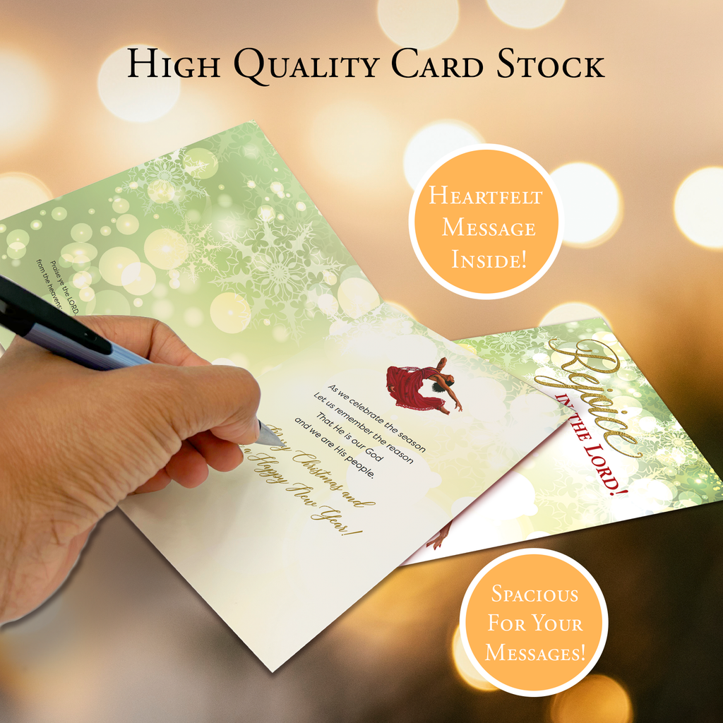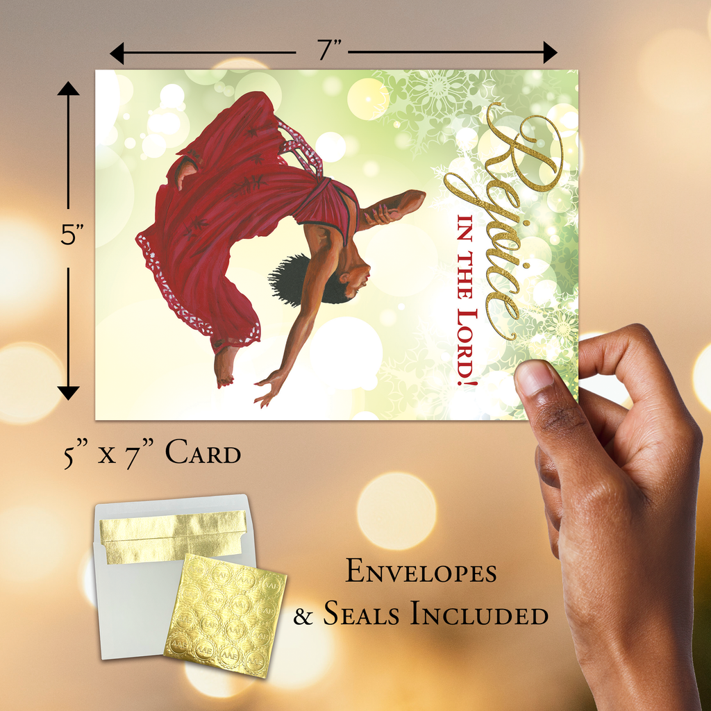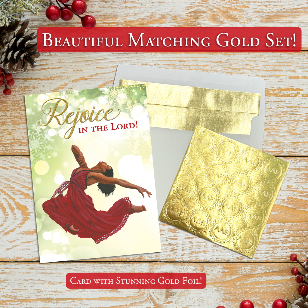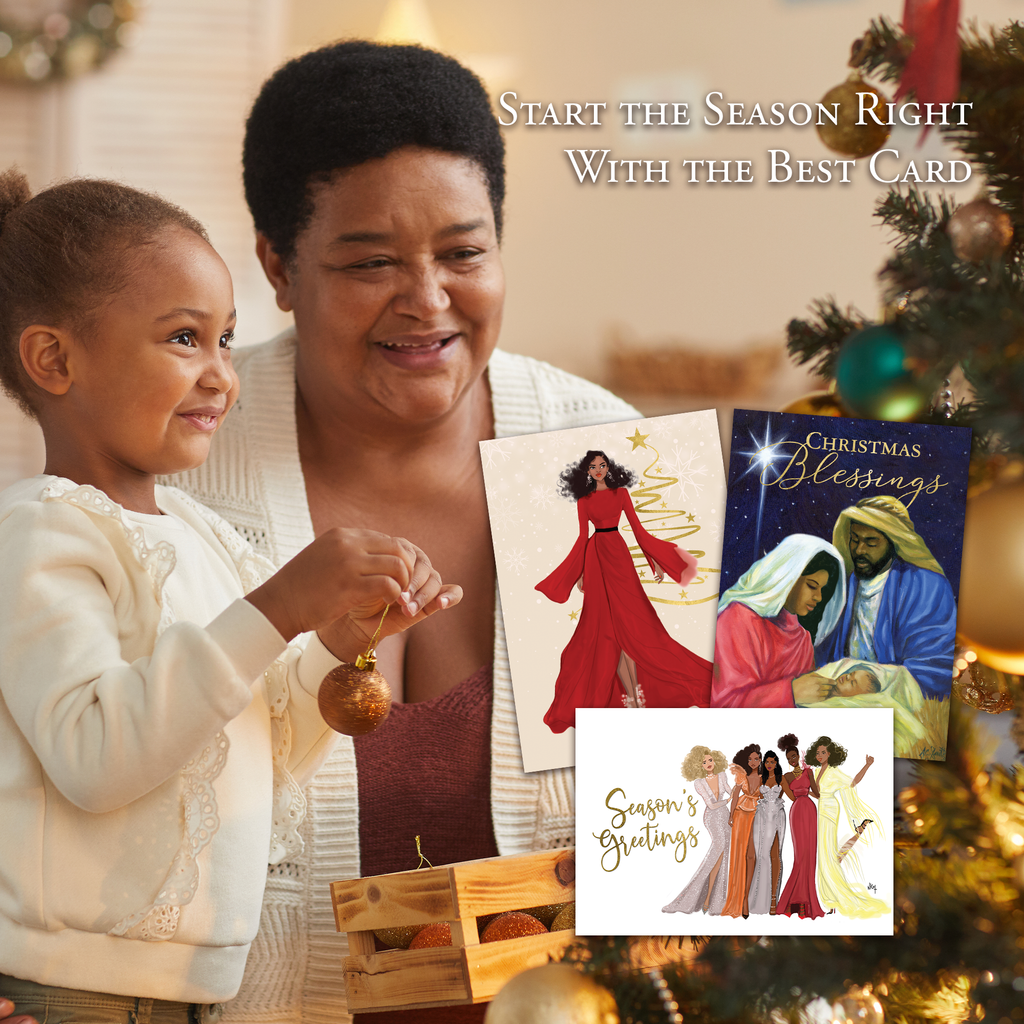 Foil-Stamped Christmas Greeting Cards Box SetAfrican American Expressions Christmas cards celebrate the joy of the holidays and the vibrancy of African-American culture! Our collection of thoughtful seasonal greeting card designs feature faith-inspiring inscriptions and culturally reflective artwork gorgeously embellished with foil-stamping. With over 20 thoughtful designs to choose from, whether timeless, traditional, or modern, you're sure to find the perfect card for everyone on your list!Designed with quality craftsmanship. Every 5 x7" greeting card features a high-resolution image, printed onto sturdy cardstock, and brilliantly embossed. You'll enjoy sharing these elegant and uplifting cards with your loved ones!Holidays, SimplifiedEverything you need to be holiday-ready in one box! AAE's boxed sets include 15 gorgeous greeting cards with coordinating foil-lined envelopes and gold sticker seals. Just personalize, seal, and deliver!FeaturesInspirational Christmas Cards5 x 7"Boxed Set15 Embossed Greeting CardsCoordinating Foil-Lined EnvelopesGold Sticker SealsAbout UsAfrican American Expressions is the world’s largest black-owned gift and greeting-card company. Known for eye-catching designs and poignant art pieces, we offer the top selection of culturally authentic gifts and give back to the community through the AAE fundraising program.