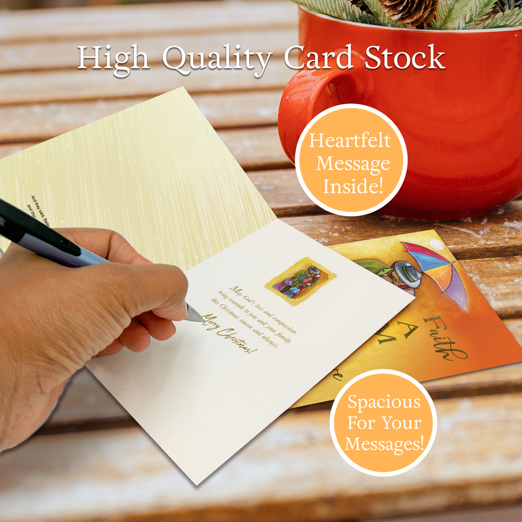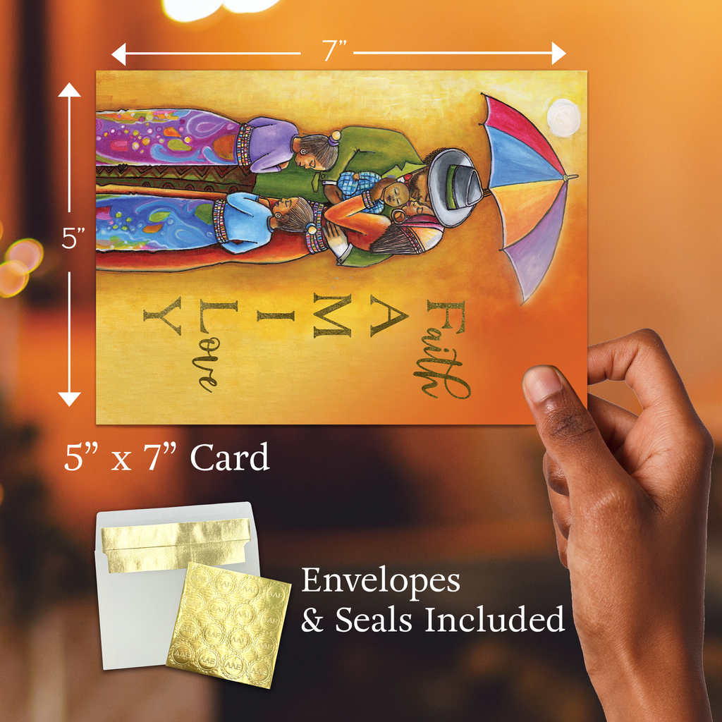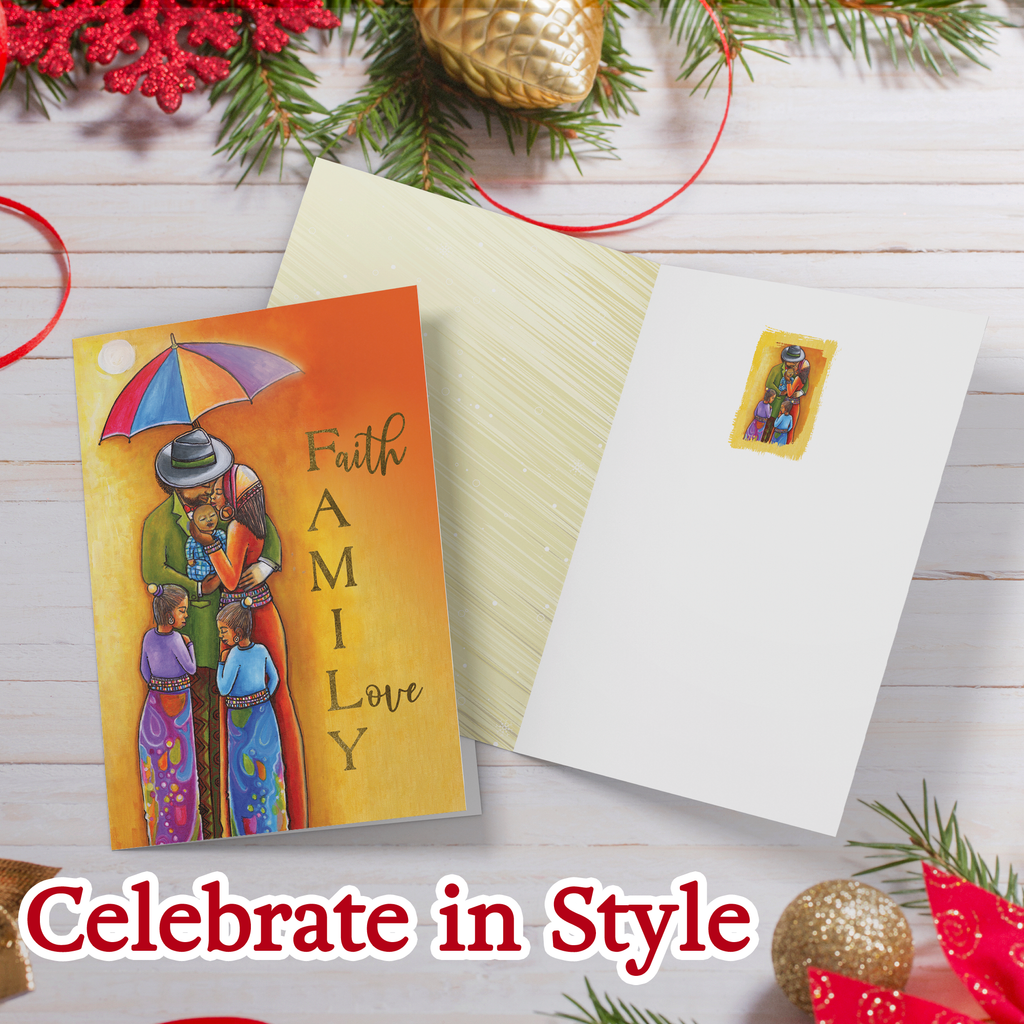 Foil-Stamped Christmas Greeting Cards Box SetAfrican American Expressions Christmas cards celebrate the joy of the holidays and the vibrancy of African-American culture! Our collection of thoughtful seasonal greeting card designs feature faith-inspiring inscriptions and culturally reflective artwork gorgeously embellished with foil-stamping. With over 20 thoughtful designs to choose from, whether timeless, traditional, or modern, you're sure to find the perfect card for everyone on your list!Designed with quality craftsmanship. Every 5 x7" greeting card features a high-resolution image, printed onto sturdy cardstock, and brilliantly embossed. You'll enjoy sharing these elegant and uplifting cards with your loved ones!Holidays, SimplifiedEverything you need to be holiday-ready in one box! AAE's boxed sets include 15 gorgeous greeting cards with coordinating foil-lined envelopes and gold sticker seals. Just personalize, seal, and deliver!FeaturesInspirational Christmas Cards5 x 7"Boxed Set15 Embossed Greeting CardsCoordinating Foil-Lined EnvelopesGold Sticker SealsAbout UsAfrican American Expressions is the world’s largest black-owned gift and greeting-card company. Known for eye-catching designs and poignant art pieces, we offer the top selection of culturally authentic gifts and give back to the community through the AAE fundraising program.