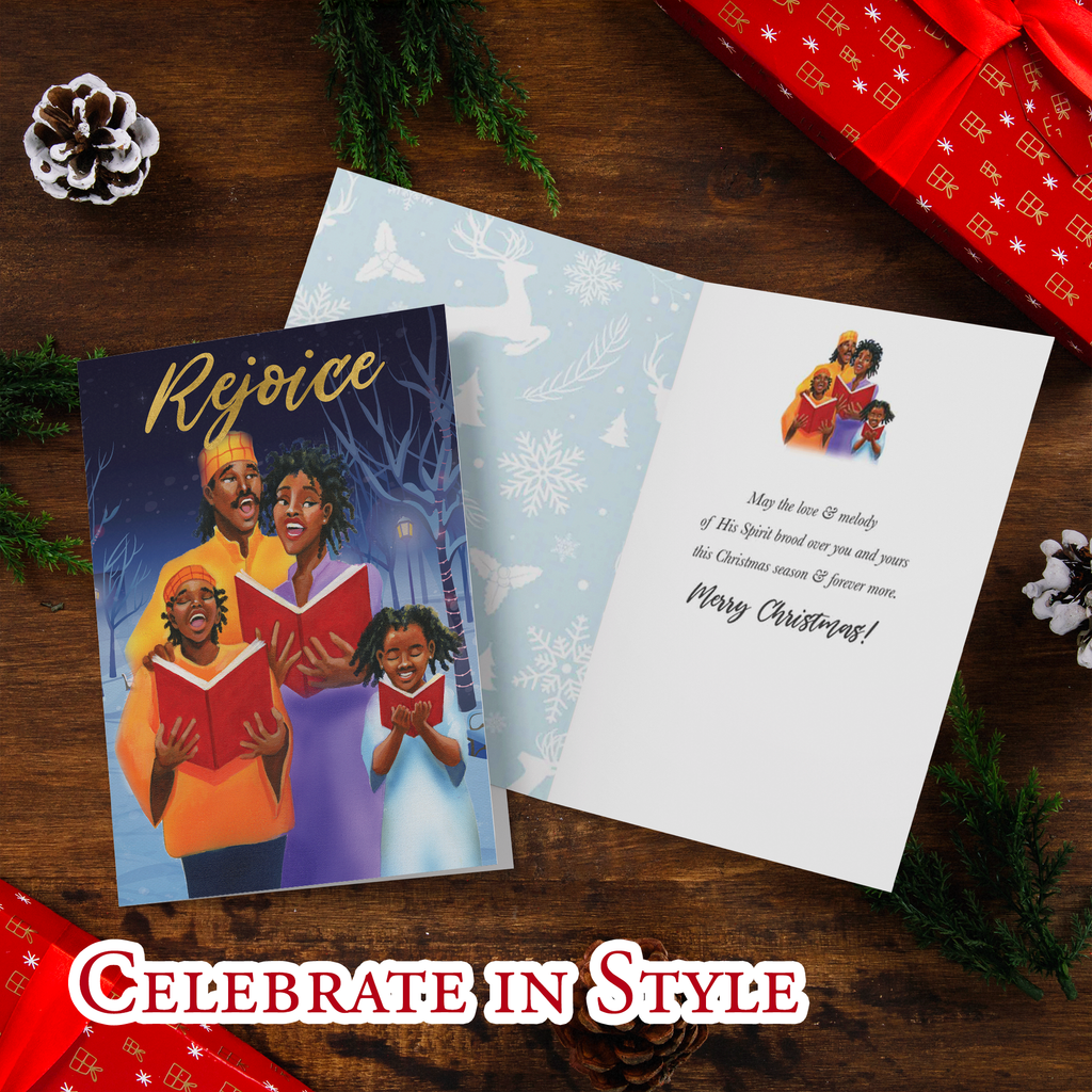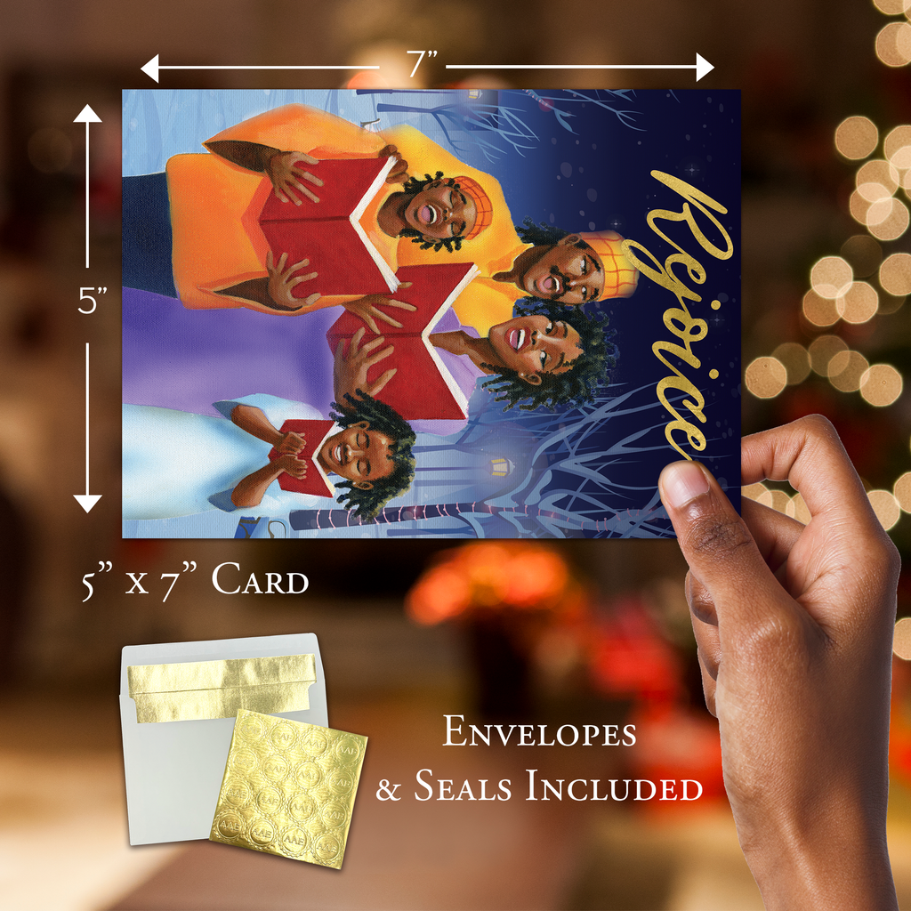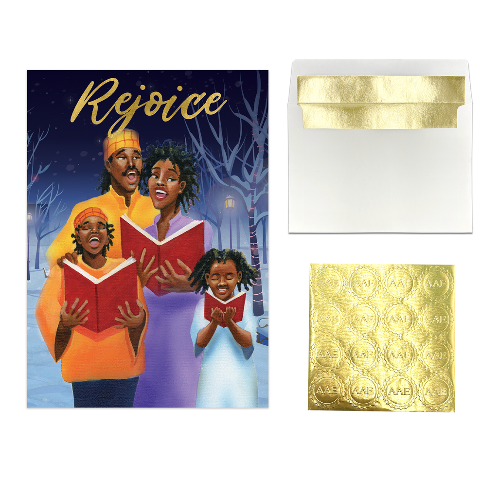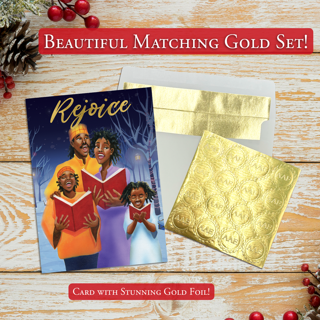 Foil-Stamped Christmas Greeting Cards Box SetAfrican American Expressions Christmas cards celebrate the joy of the holidays and the vibrancy of African-American culture! Our collection of thoughtful seasonal greeting card designs feature faith-inspiring inscriptions and culturally reflective artwork gorgeously embellished with foil-stamping. With over 20 thoughtful designs to choose from, whether timeless, traditional, or modern, you're sure to find the perfect card for everyone on your list!Designed with quality craftsmanship. Every 5 x7" greeting card features a high-resolution image, printed onto sturdy cardstock, and brilliantly embossed. You'll enjoy sharing these elegant and uplifting cards with your loved ones!Holidays, SimplifiedEverything you need to be holiday-ready in one box! AAE's boxed sets include 15 gorgeous greeting cards with coordinating foil-lined envelopes and gold sticker seals. Just personalize, seal, and deliver!FeaturesInspirational Christmas Cards5 x 7"Boxed Set15 Embossed Greeting CardsCoordinating Foil-Lined EnvelopesGold Sticker SealsAbout UsAfrican American Expressions is the world’s largest black-owned gift and greeting-card company. Known for eye-catching designs and poignant art pieces, we offer the top selection of culturally authentic gifts and give back to the community through the AAE fundraising program.