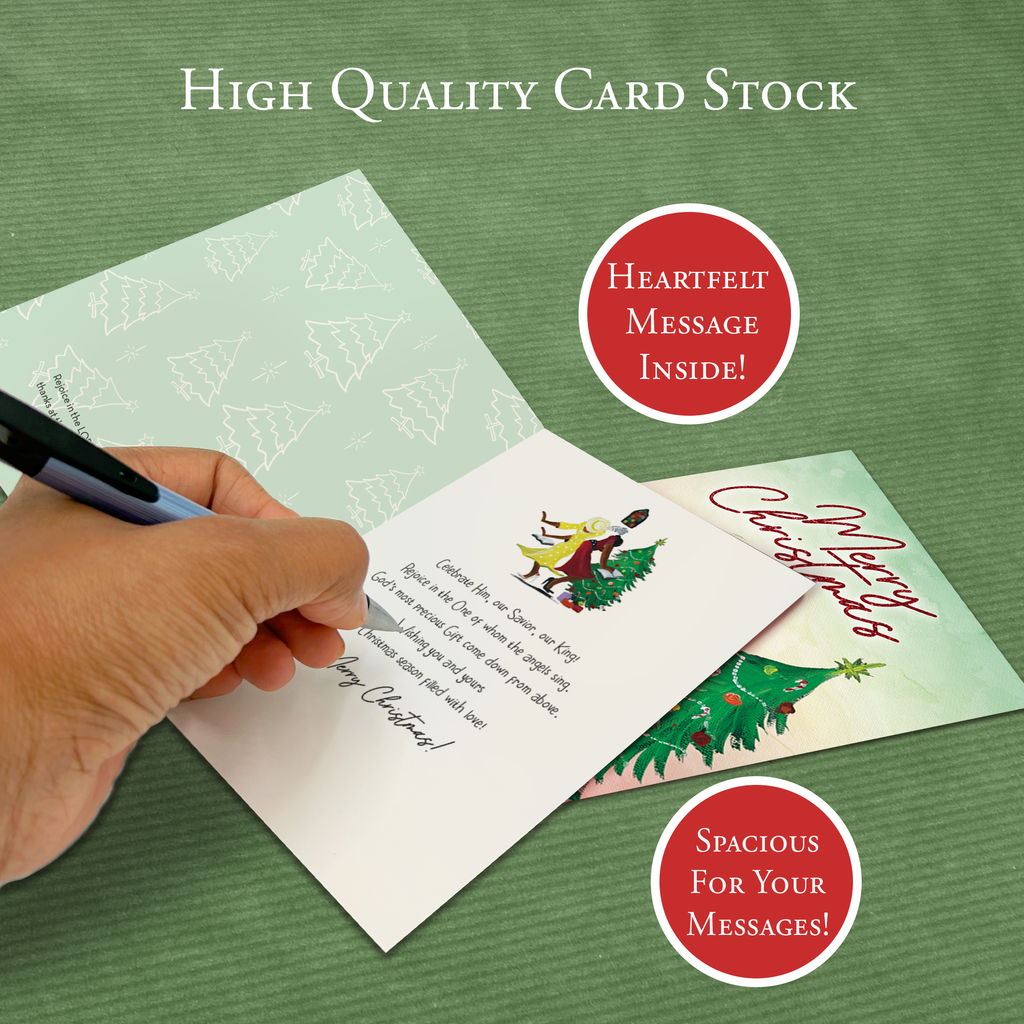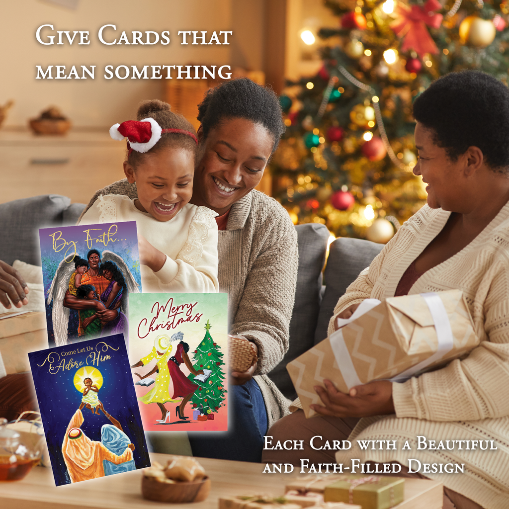 Foil-Stamped Christmas Greeting Cards Box SetAfrican American Expressions Christmas cards celebrate the joy of the holidays and the vibrancy of African-American culture! Our collection of thoughtful seasonal greeting card designs feature faith-inspiring inscriptions and culturally reflective artwork gorgeously embellished with foil-stamping. With over 20 thoughtful designs to choose from, whether timeless, traditional, or modern, you're sure to find the perfect card for everyone on your list!Designed with quality craftsmanship. Every 5 x7" greeting card features a high-resolution image, printed onto sturdy cardstock, and brilliantly embossed. You'll enjoy sharing these elegant and uplifting cards with your loved ones!Holidays, SimplifiedEverything you need to be holiday-ready in one box! AAE's boxed sets include 15 gorgeous greeting cards with coordinating foil-lined envelopes and gold sticker seals. Just personalize, seal, and deliver!FeaturesInspirational Christmas Cards5 x 7"Boxed Set15 Embossed Greeting CardsCoordinating Foil-Lined EnvelopesGold Sticker SealsAbout UsAfrican American Expressions is the world’s largest black-owned gift and greeting-card company. Known for eye-catching designs and poignant art pieces, we offer the top selection of culturally authentic gifts and give back to the community through the AAE fundraising program.