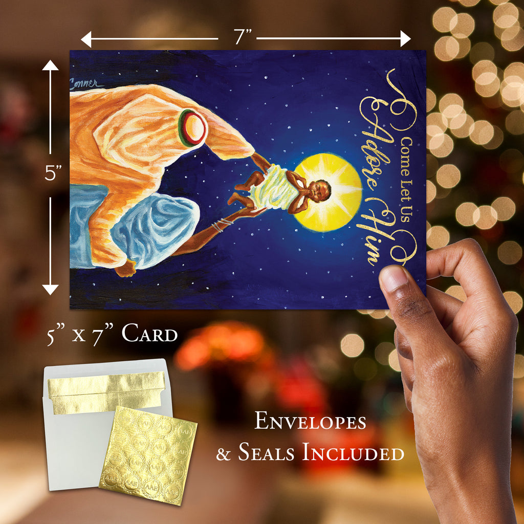 Foil-Stamped Christmas Greeting Cards Box SetAfrican American Expressions Christmas cards celebrate the joy of the holidays and the vibrancy of African-American culture! Our collection of thoughtful seasonal greeting card designs feature faith-inspiring inscriptions and culturally reflective artwork gorgeously embellished with foil-stamping. With over 20 thoughtful designs to choose from, whether timeless, traditional, or modern, you're sure to find the perfect card for everyone on your list!Designed with quality craftsmanship. Every 5 x7" greeting card features a high-resolution image, printed onto sturdy cardstock, and brilliantly embossed. You'll enjoy sharing these elegant and uplifting cards with your loved ones!Holidays, SimplifiedEverything you need to be holiday-ready in one box! AAE's boxed sets include 15 gorgeous greeting cards with coordinating foil-lined envelopes and gold sticker seals. Just personalize, seal, and deliver!FeaturesInspirational Christmas Cards5 x 7"Boxed Set15 Embossed Greeting CardsCoordinating Foil-Lined EnvelopesGold Sticker SealsAbout UsAfrican American Expressions is the world’s largest black-owned gift and greeting-card company. Known for eye-catching designs and poignant art pieces, we offer the top selection of culturally authentic gifts and give back to the community through the AAE fundraising program.