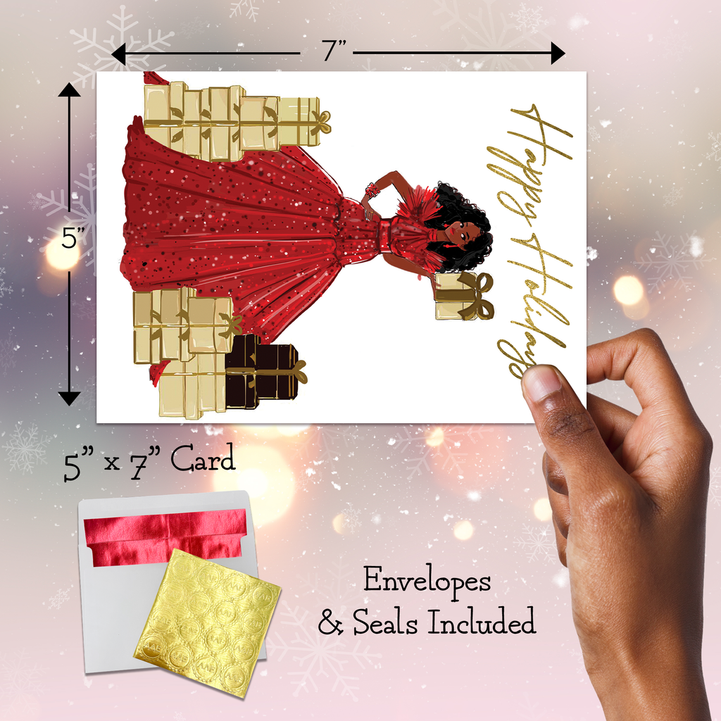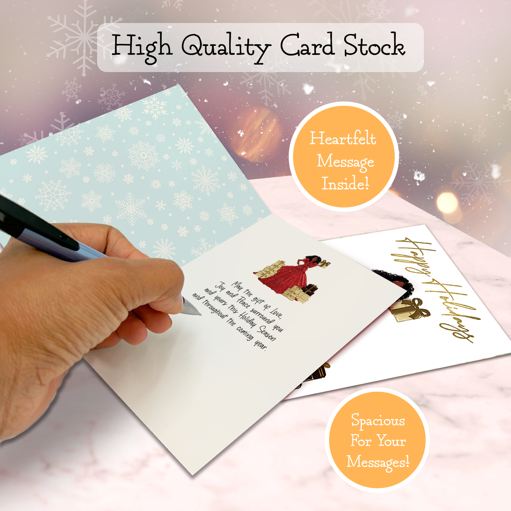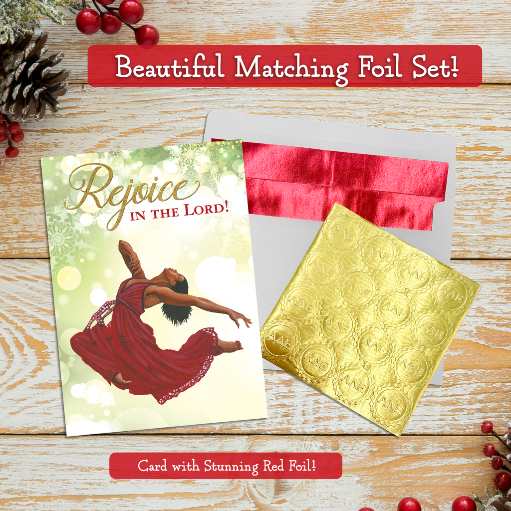 Foil-Stamped Christmas Greeting Cards Box SetAfrican American Expressions Christmas cards celebrate the joy of the holidays and the vibrancy of African-American culture! Our collection of thoughtful seasonal greeting card designs feature faith-inspiring inscriptions and culturally reflective artwork gorgeously embellished with foil-stamping. With over 20 thoughtful designs to choose from, whether timeless, traditional, or modern, you're sure to find the perfect card for everyone on your list!Designed with quality craftsmanship. Every 5 x7" greeting card features a high-resolution image, printed onto sturdy cardstock, and brilliantly embossed. You'll enjoy sharing these elegant and uplifting cards with your loved ones!Holidays, SimplifiedEverything you need to be holiday-ready in one box! AAE's boxed sets include 15 gorgeous greeting cards with coordinating foil-lined envelopes and gold sticker seals. Just personalize, seal, and deliver!FeaturesInspirational Christmas Cards5 x 7"Boxed Set15 Embossed Greeting CardsCoordinating Foil-Lined EnvelopesGold Sticker SealsAbout UsAfrican American Expressions is the world’s largest black-owned gift and greeting-card company. Known for eye-catching designs and poignant art pieces, we offer the top selection of culturally authentic gifts and give back to the community through the AAE fundraising program.