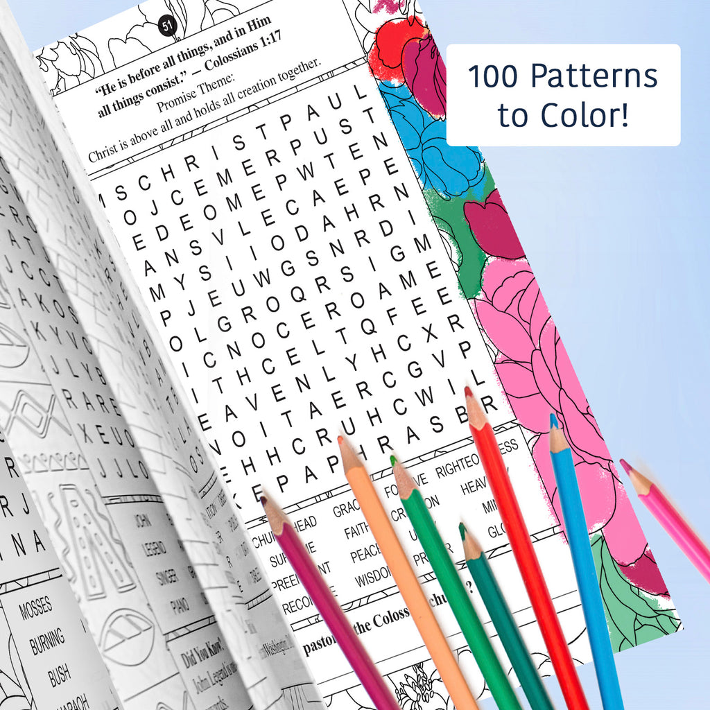 Includes word searches, coloring pages, and Bible trivia—fun, relaxing, and spiritually uplifting.