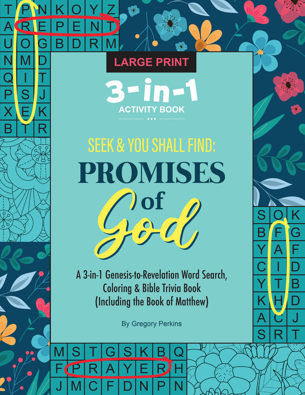 Discover the joy of exploring God’s Word with this inspiring 3-in-1 Promises of God Bible Activity Book, a powerful blend of word search puzzles, coloring pages, and Bible trivia designed to strengthen your faith and bring Scripture to life.