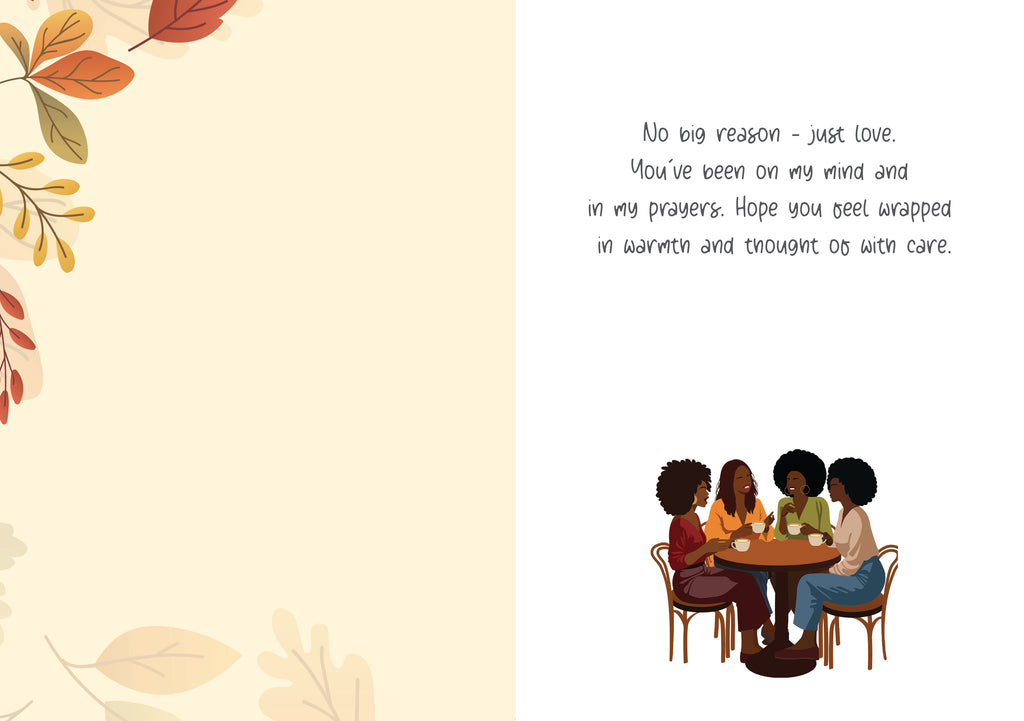 Inside:No big reason — just love.You’ve been on my mind and in my prayers.Hope you feel wrapped in warmth and thought of with care.