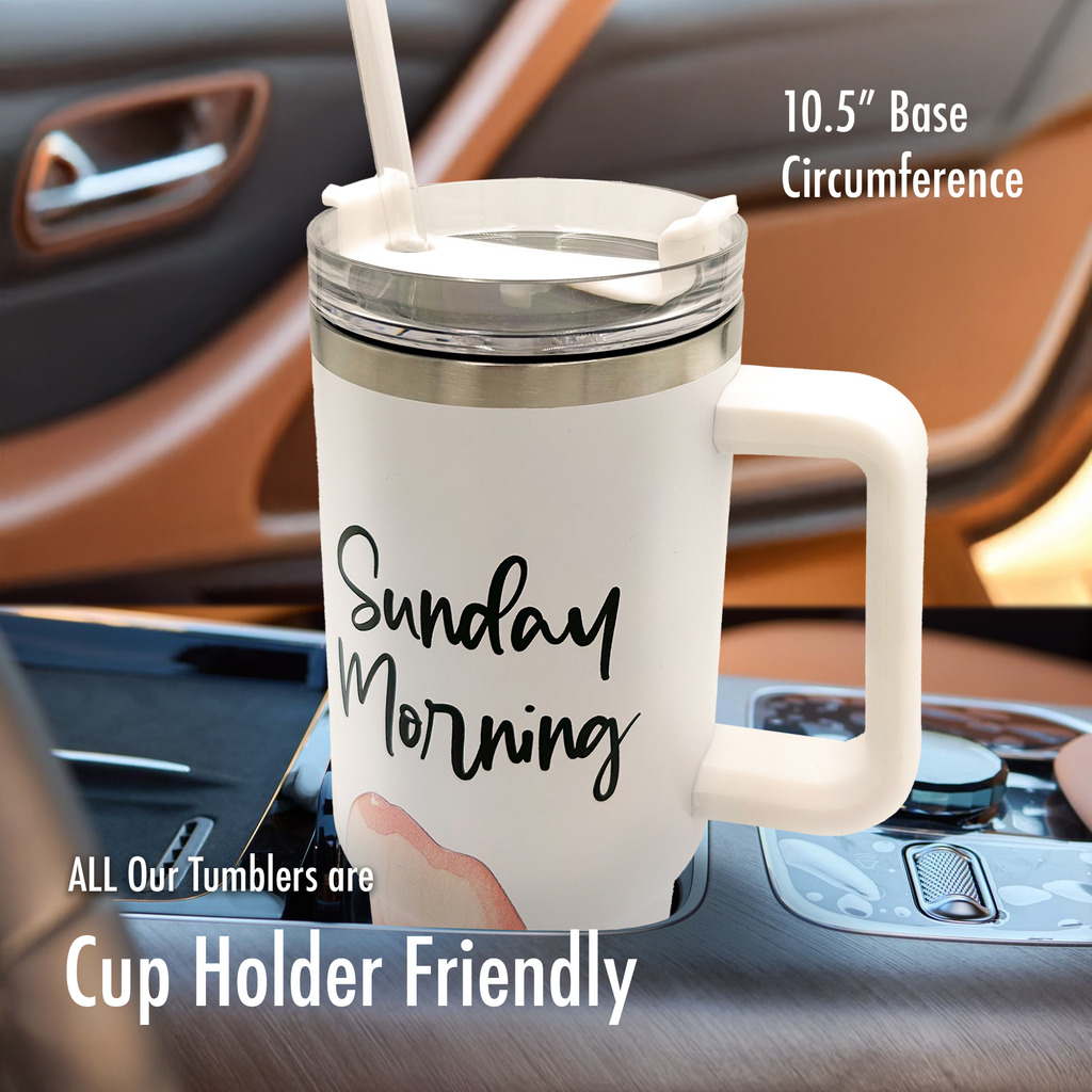 40oz Capacity for Daily Use Large enough to keep you hydrated throughout the day, whether it’s coffee for work, water at the gym, or tea during devotionals.