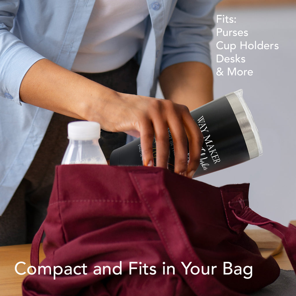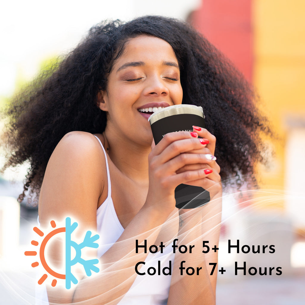 Crafted with double-wall stainless steel insulation, it keeps your drinks hot or cold for hours. The secure twist-on lid makes it perfect for busy mornings, commutes, or long days at work. Its slimmer 20oz size easily fits in most cup holders and bags—without sacrificing style or message.