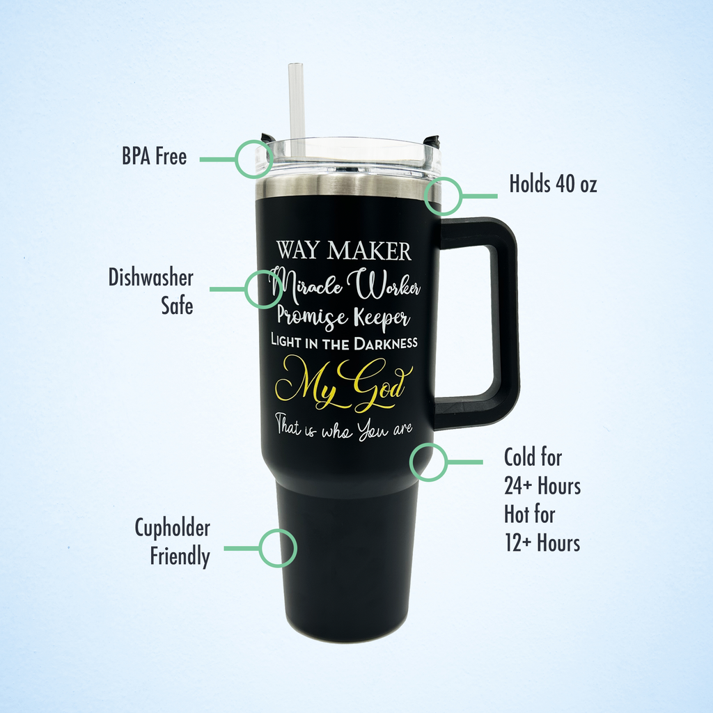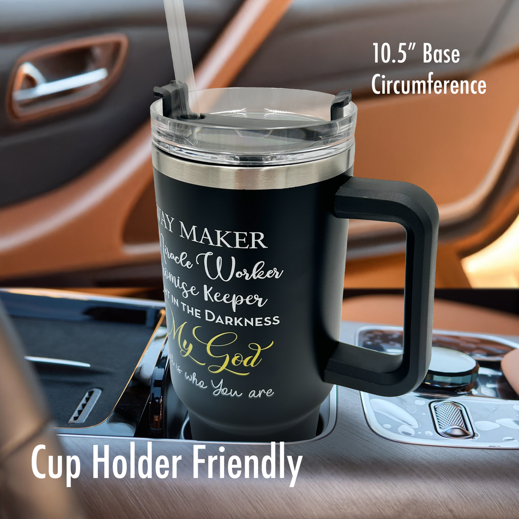 • 40oz Capacity for Daily Use Large enough to keep you hydrated throughout the day, whether it’s coffee for work, water at the gym, or tea during devotionals.