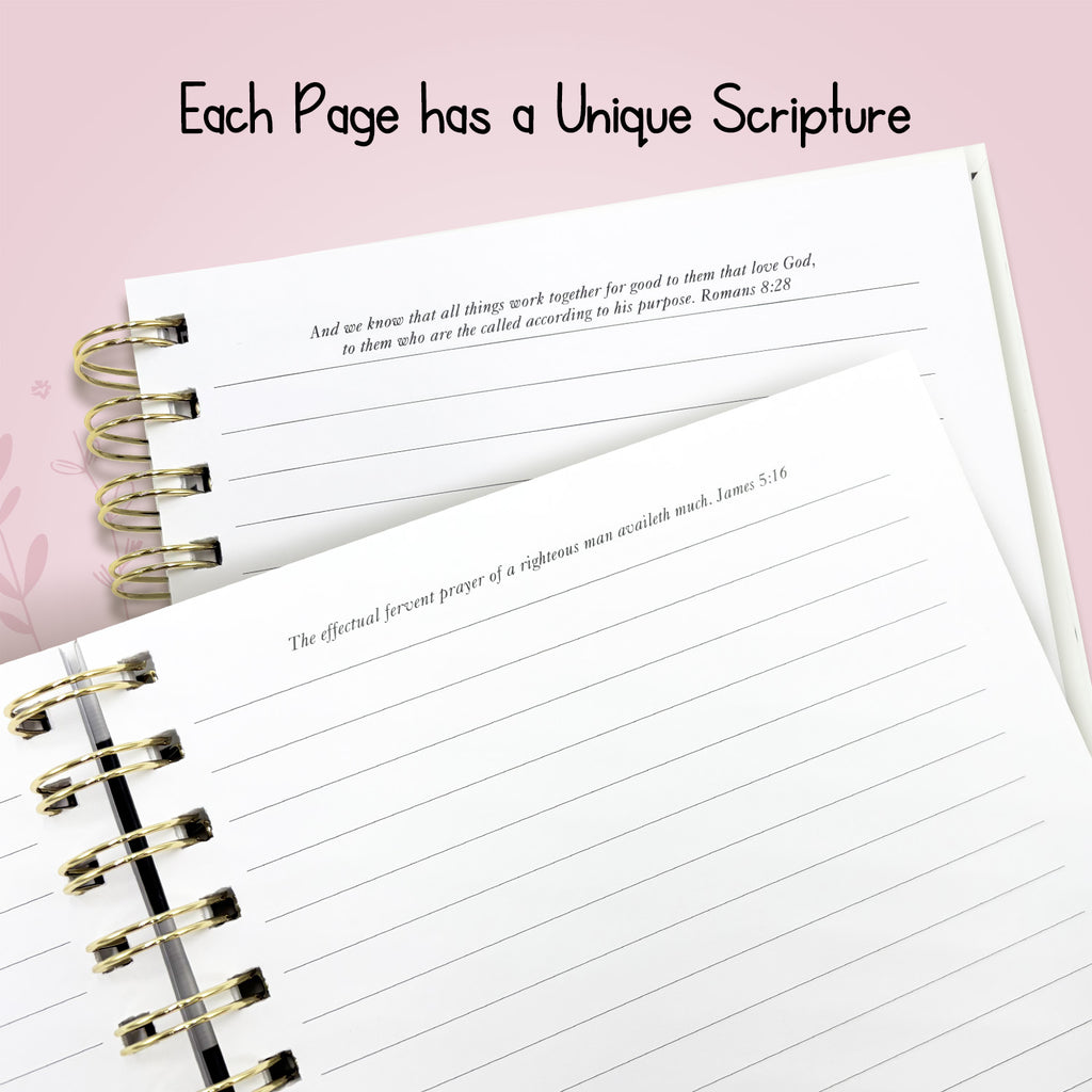 • Quality: The pages are high quality, thick paper preventing any ink bleeding through or smudging. Journal is spiral bound, including 128 pages with scripture at the top of every page. Size: 6.25” x 8.5”