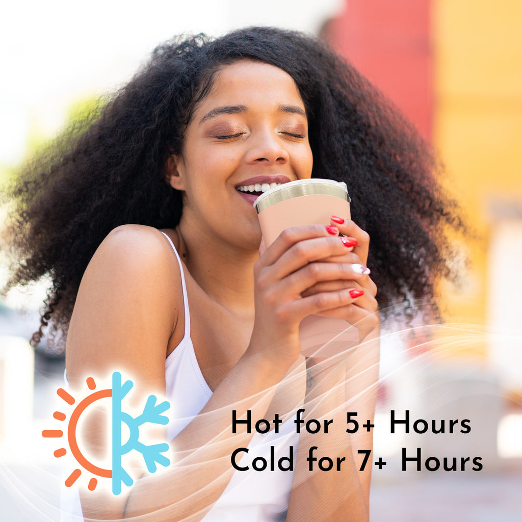• Double-Wall Vacuum Insulated Made of premium stainless steel to keep drinks cold for up to 24 hours or hot for up to 12. Great for all-day use in any season.
