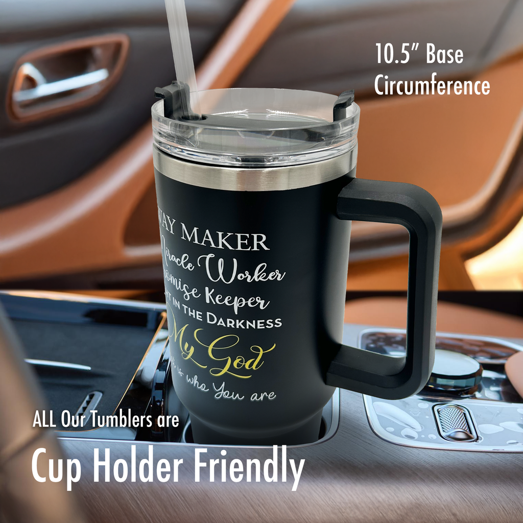 • 40oz Capacity for Daily Use Large enough to keep you hydrated throughout the day, whether it’s coffee for work, water at the gym, or tea during devotionals.